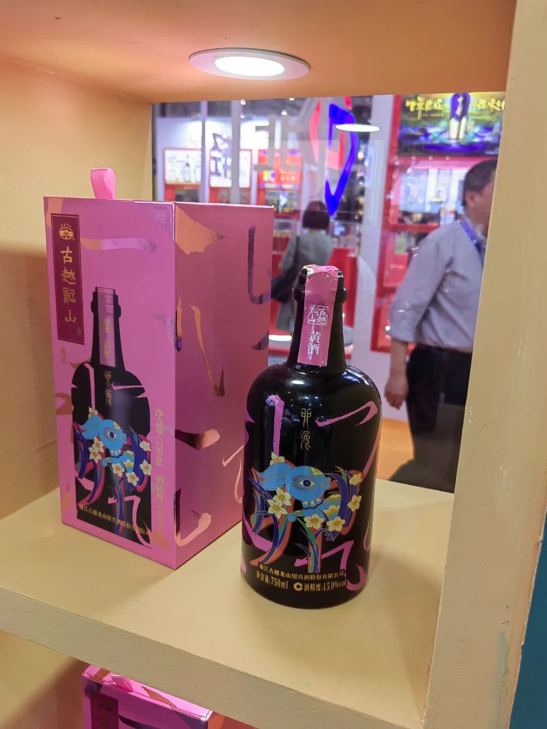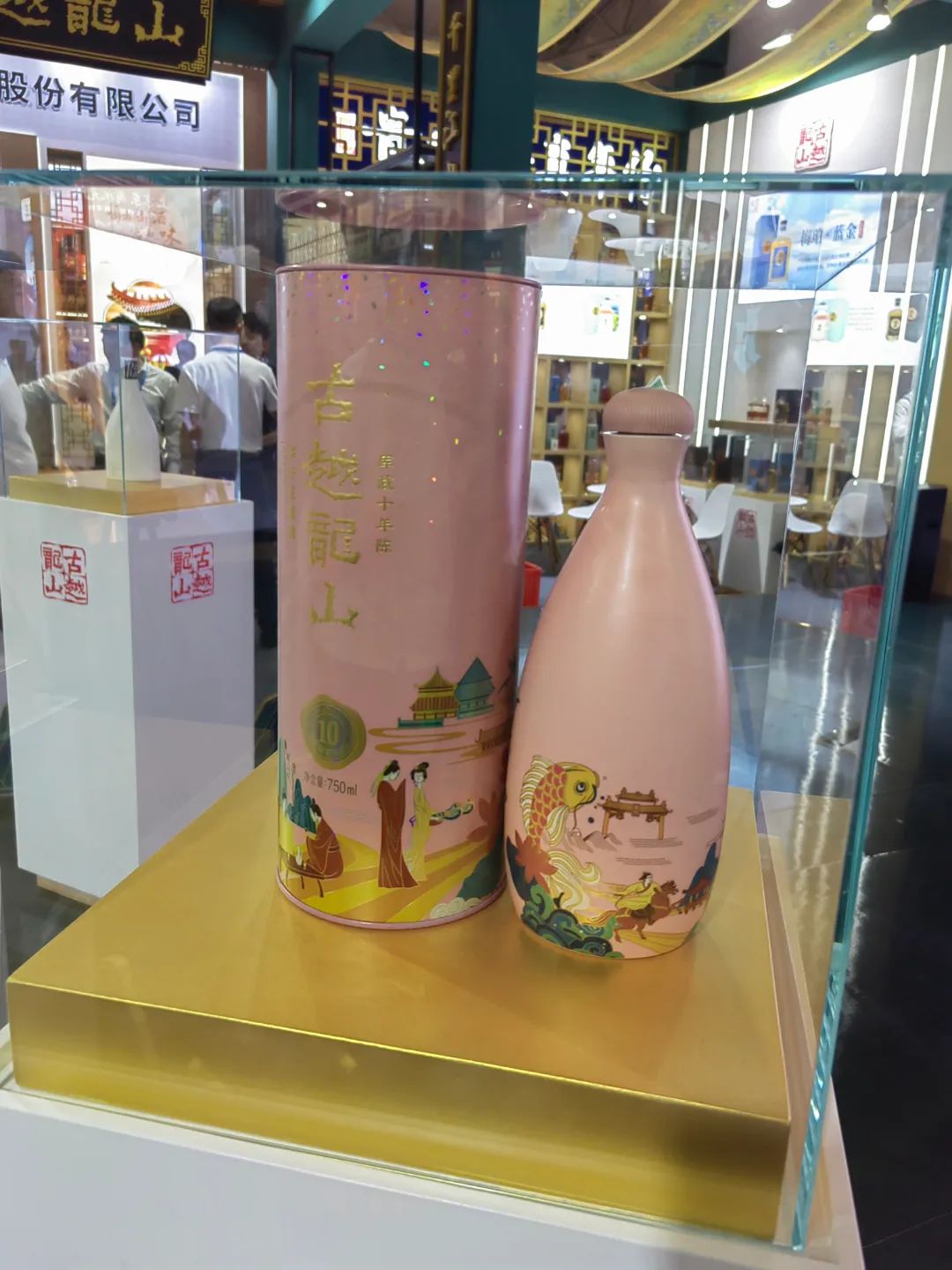 古越龙山展区两侧是文创和果酒公司的展陈布置。文创产品体现夏商周+兔年生肖酒元素,凸显文化创意品牌,增加参与和体验,果酒系列主要体现青梅煮酒论英雄,增加调酒师调酒互动环节,吸引了众多时尚、年轻人品酒互动。