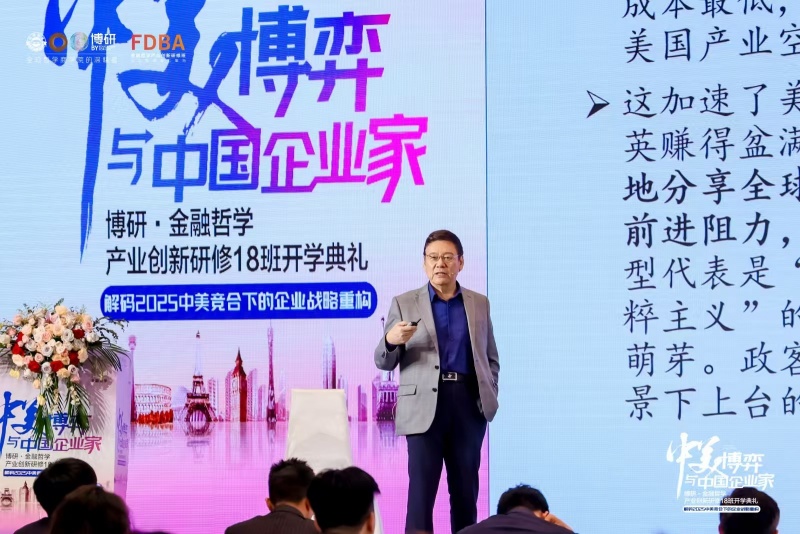香港中文大学(深圳)校长讲座教授郝雨凡,讲授《特朗普政府对世界秩序和中美关系的影响》,从政策角度剖析中美关系及中国经济挑战,探究国际局势、美国政策变化原因及社会现状,提出中国应对策略,为企业家拓展国际视野。
