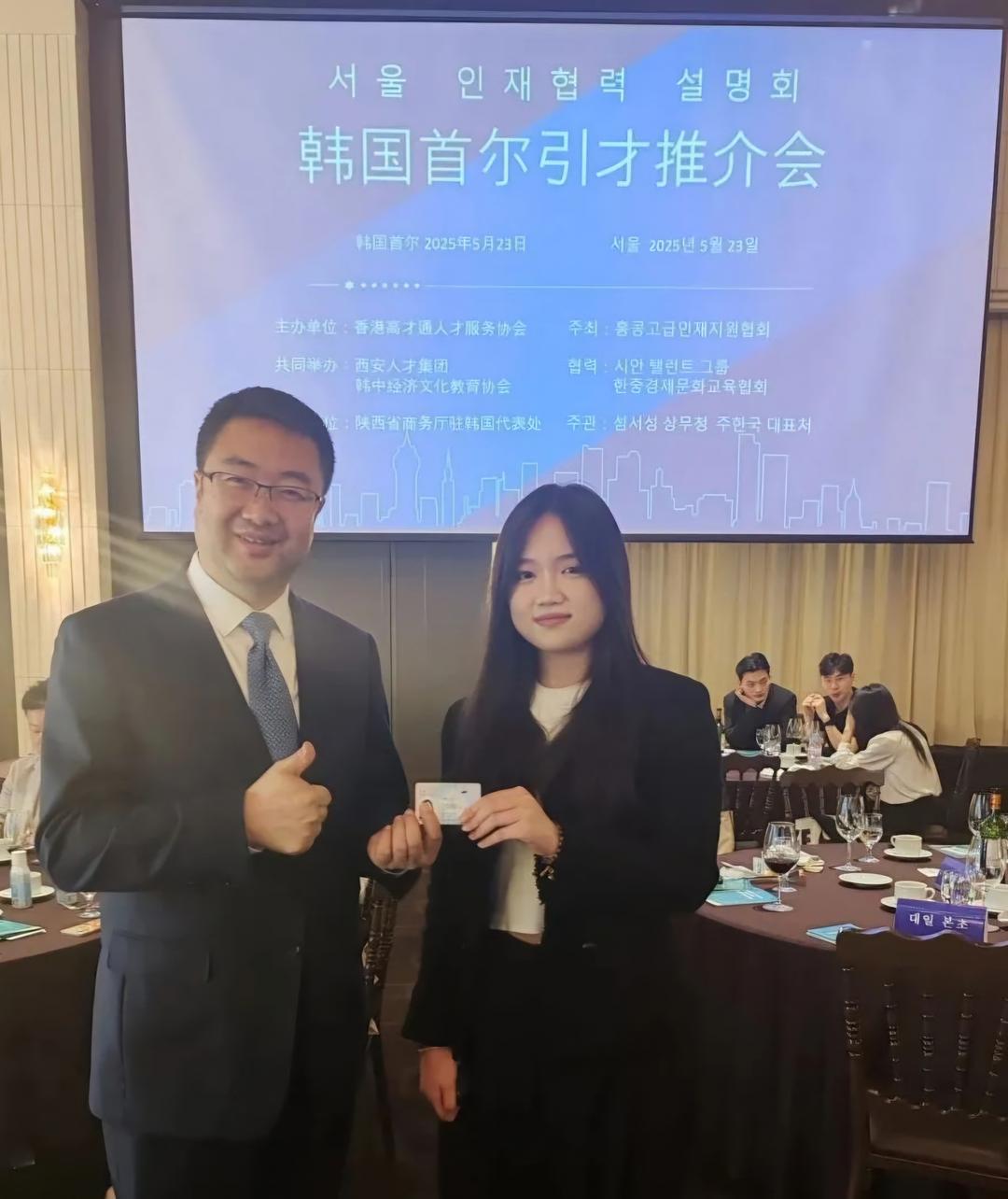 全球自由贸易网据新亚太新媒体香港讯(记者 王群鹤霖)2025年5月23日下午4点,由香港高才通人才服务协会主办,西安人才集团和韩中经济文化教育协会共同协办的「中国香港、陕西·韩国首尔引才推介会」在首尔埃琳娜酒店隆重举行。这项活动吸引了中韩两国政界、学界、企业界的重要嘉宾以及延世大学、成均馆大学、高丽大学、汉阳大学、首尔国立大学等众多韩国顶尖高校学生参与。活动旨在推动中韩两国人才交流,展现香港的人才引进政策,为国际化高端人才提供发展新机会。