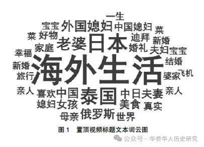 从置顶视频标题文本的内容看,视频主题主要内容为海外生活类,如泰国、日本、俄罗斯、迪拜等,以及家庭生活类,如外国媳妇、中国媳妇、中日夫妻、母亲、宝宝、亲人、家庭等。视频标题使用正向词汇居多,如喜欢、真实、幸福、健康等,主要使用正面词汇,展现了海外华人群体的积极形象,如图 1 所示。