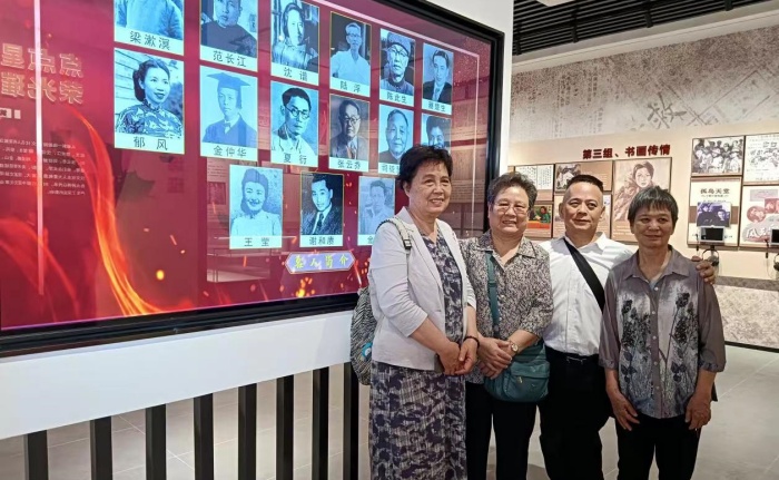 图为王玉珍、陈凯伦、陈凯辛、陈凯安等香港抗战史研究者参观台山都斛镇中国文化名人胜利大营救事迹展览