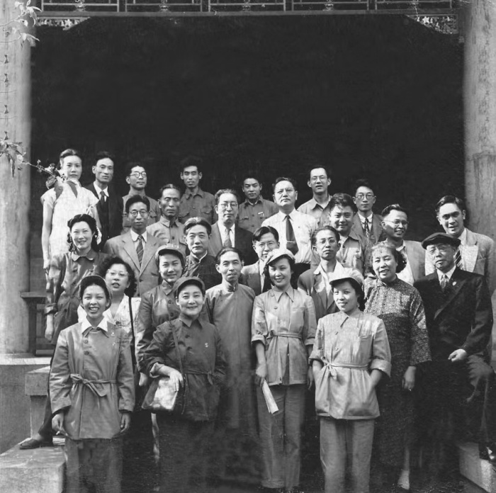 历史照片:图为1949年5月,一批文化人士在北京东总布布胡同全国文联筹备处外合影。其中有1942年秘密大营救脱险的人士,如茅盾、戈宝权等著名学者。