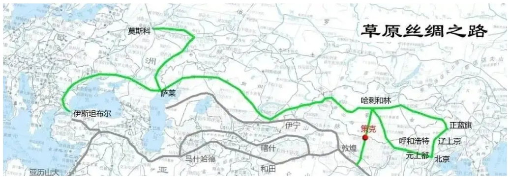除了“陆上丝绸之路”和“海上丝绸之路”,还有北向蒙古高原,再西行天山北麓进入中亚的“草原丝绸之路”等。