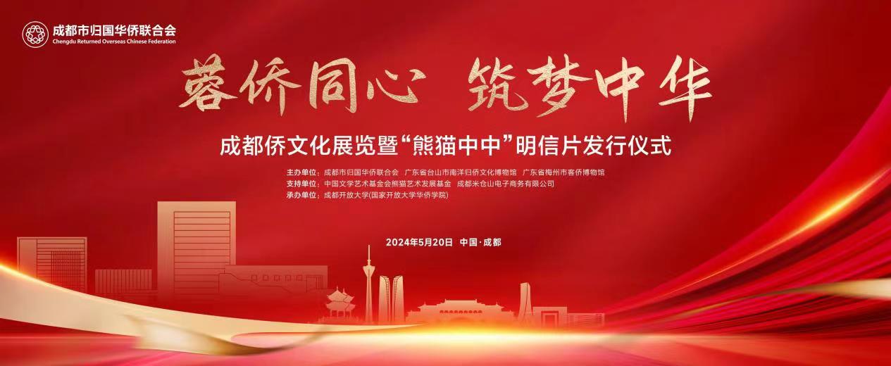 5月20日,开幕仪式上,主办单位隆重举行 “熊猫中中”明信片发行仪式。据广东省台山市南洋归侨文化博物馆理事长方光明先生介绍,“熊猫中中”品牌形象由中国美术家协会理事、中国著名熊猫画家刘中先生原创。“熊猫中中”品牌以自信、坚强、热情、充满爱心的形象,展示了和平共存、友善包容、仁者爱人的中国传统文化。近年来,中国文学艺术基金会熊猫艺术发展基金、广东省台山市南洋归侨文化博物馆、广东省梅州市客侨博物馆、成都米仓山电子商务有限公司为践行“海外华侨华人要当好民间交往的使者,促进住在国与祖(籍)国的人文交流合作”的宗旨与追求,策划安排在北京和成都两地同时向全球发布“熊猫中中迎端午”明信片,以大熊猫形象传播巴蜀文化,促进中外文明融合发展。