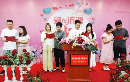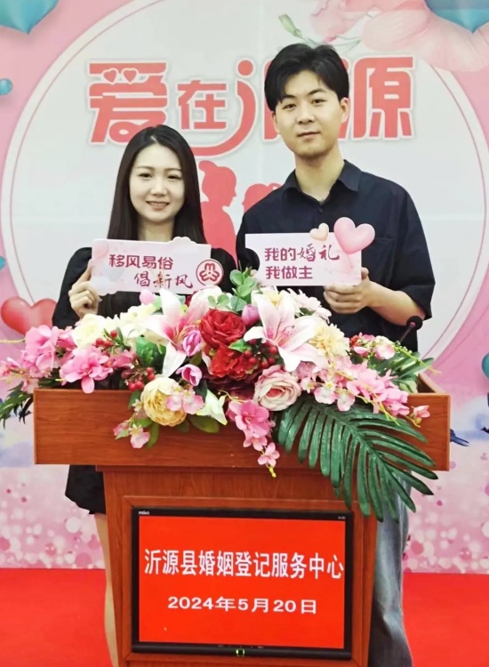 “5·20”当天,沂源县共为87对新人办理结婚登记。