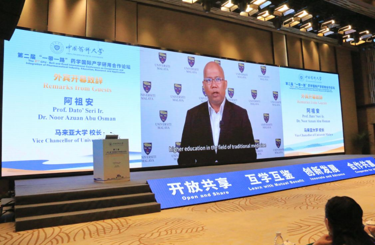 马来亚大学校长阿祖安以视频形式发表致辞。他表示,此次合作不仅为中国药科大学和马来亚大学提供了一个广阔的研究平台,同时也为药物开发领域带来了新的发展机遇。双方将共同识别药物开发中的关键类型和领域,并致力于精准药物和混合药物的研发,共同推动全球医药行业的进步与发展。