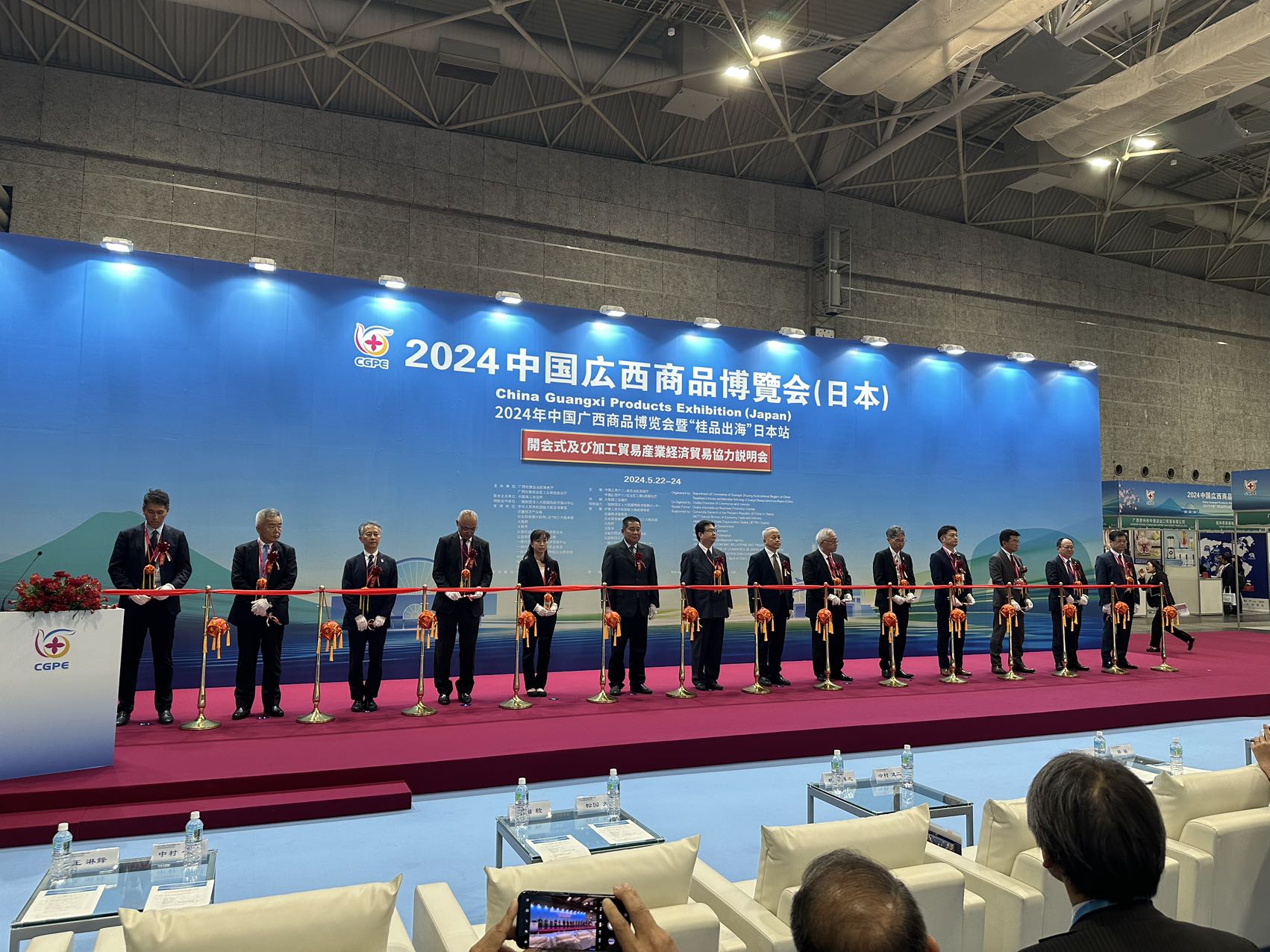 2024年5月22日上午,由中国广西壮族自治区商务厅、工业和信息化厅主办,大阪商工会议所联合主办的2024年中国广西商品博览会暨“桂品出海”日本站开幕式和2024年中国(广西)加工贸易产业经贸合作推介会在日本大阪INTEX展览中心1号馆隆重举行,中国驻大阪总领事馆、中国广西自治区政府部门及参展企业代表、日本相关经贸部门、商协会、中国在日企业、采购商代表及10余家媒体代表共计100多人现场参加相关活动。
