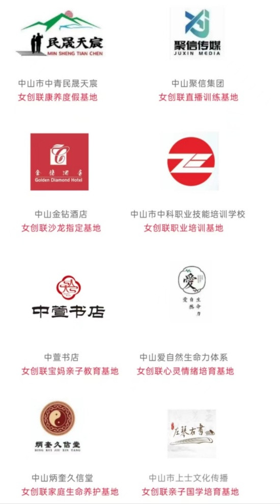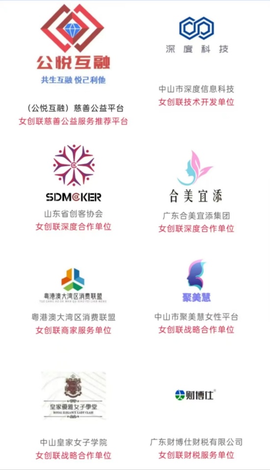 全球女性创业创新联盟、中国信息通信研究院、中国通信工业协会、山东省创客协会、工信部电子五所济宁研究院、广东前海金融科技研究院、广东众智科学研究院、北京九九用智信息科学研究院、亚洲国际美学研究院、母爱天下书院、广东散文诗学会、广州市女企业家促进会、上海海峡两岸青年创业基地、上海合作组织农业基地经贸投资(长三角)促进中心等。