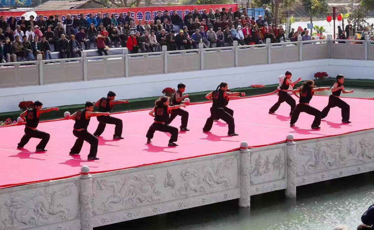 洋弟子在新会崖门镇京梅村表演蔡李佛拳