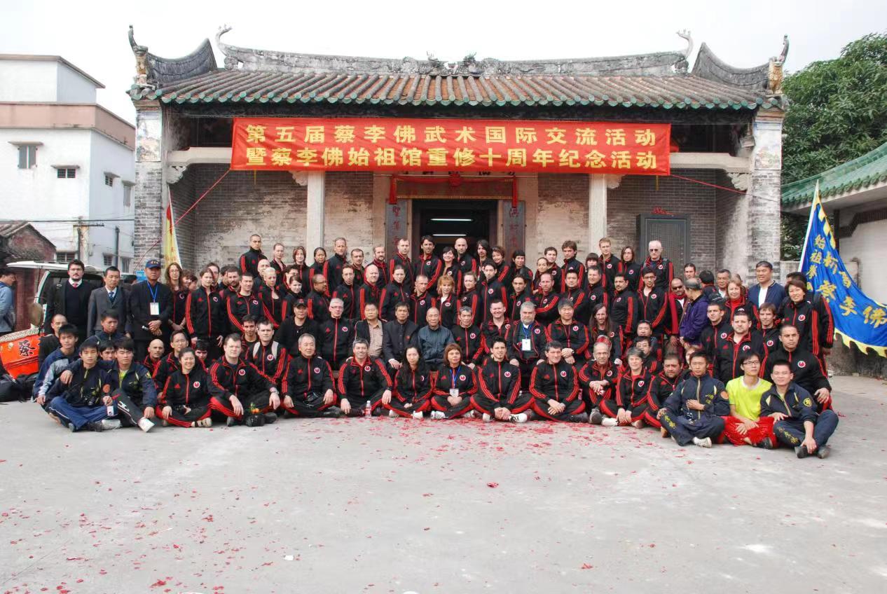 二十年前大力推动各国洋弟子来新会寻根,与澳大利亚侨胞陈永发先生的不懈努力息息相关密不可分。陈永发先生是蔡李佛武术创始入陈享的玄孙、蔡李佛第五代传人,他1951年生于广州,自幼随爷爷陈耀墀及父亲陈云汉习武学医,尽得家传,武艺医术颇高。1983年,他移居澳大利亚悉尼,取得执业医师职业,在澳大利亚设“洪圣馆”及“永胜堂”,致力在澳大利亚华人社区和洋弟子中于传播蔡李佛武术和中医药,让蔡李佛在世界各地发扬光大。通过数十年奋斗努力,陈永发在30多个国家和地区设有蔡李佛洪圣馆或永胜堂分会,弟子有数百万名,遍及五大洲。陈永发常告诫洋弟子:要学中国功夫,必须要认识中国传统文化,必须要懂得认祖归宗。虽然身在异国,但只要有时间,陈永发就会带着弟子跨越大洋回新会京梅村祭祖。2001年至2019年,陈永发先后组织十多批不同国家和地区的洋弟子代表,共计数万人次回蔡李佛发源地京梅村归宗溯源、武术培训和交流活动,影响深远,为蔡李佛的传承与复兴作出卓越贡献。如今,陈永发每年都会安排时间,飞行于各大洲进行蔡李佛武术文化讲学,他最大的心愿就是把蔡李佛传给世界各国更多的弟子,让蔡李佛在世界各地不断生根发芽,发扬光大!
