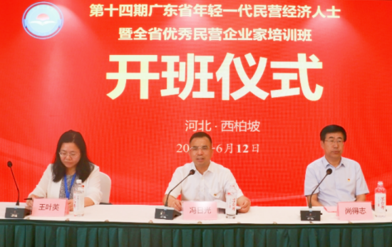 自由贸易网广东讯(记者 陆丽萍 张兆伟 报道)6月12日上午,第十四期广东省年轻一代民营经济人士暨全省优秀民营企业家培训班开班仪式在河北西柏坡举行。广东省工商联党组成员、专职副主席冯日光作动员讲话,并为培训班授班旗。河北省工商联党组成员、专职副主席尚得志致欢迎辞。广东省工商联副秘书长、一级调研员王叶英主持开班仪式。来自全省各地级以上市及港澳地区共计70名年轻一代和优秀民营企业家代表参加培训。