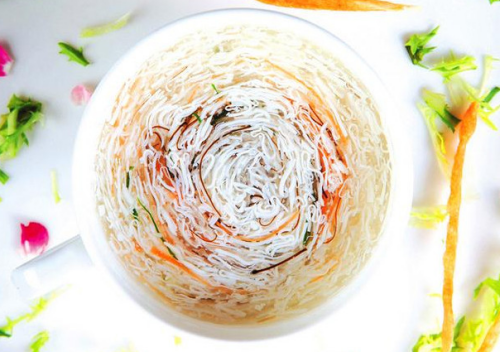 苏菜系-淮扬菜。起源于江苏扬州。制作时,要把嫩豆腐切成5000条“发丝”大小的细丝,极其考验大厨的刀工。