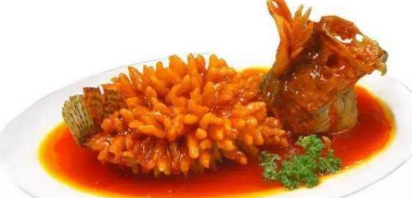 苏菜系-苏州菜,又名松鼠鳜鱼,做成后外脆里嫩、酸甜可口。