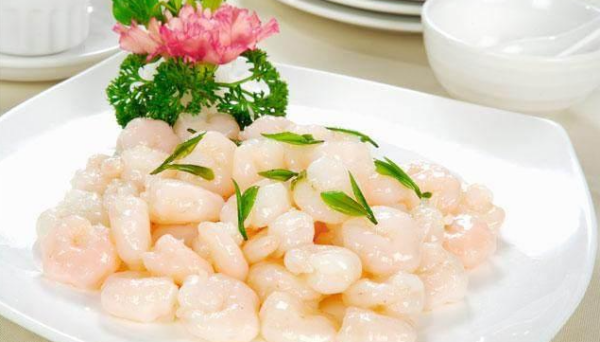 龙井虾仁选用清明节前后的龙井茶配以虾仁制作。相传一位杭州厨师受苏东坡词《望江南》“且将新火试新茶,诗酒趁年华”的启发,选用“色绿、香郁、味甘、形美”的明前龙井新茶和鲜河虾仁烹制而成。