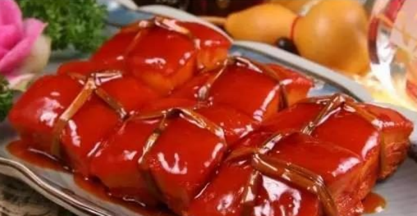 杭州百姓感念苏东坡疏浚西湖,抬猪担酒送到太守府。苏东坡叫府上厨师把肉切成方块,用自己的家乡四川眉山炖肘子的方法,结合杭州人的口味特点,用文火焖得香嫩酥烂,成菜后,码成整整齐齐的麻将块儿,红得透亮,色如玛瑙,夹起一块尝尝,软而不烂,肥而不腻。
