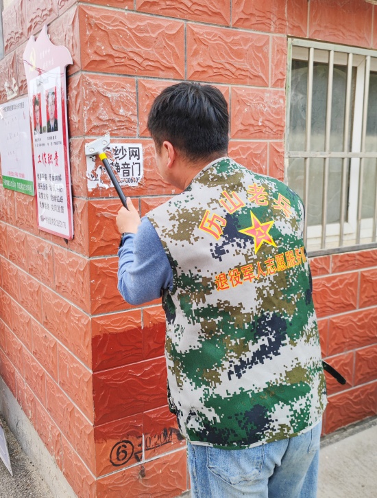 自由贸易网山东讯(记者 张兆伟 通讯员 逯纪花 报道)为营造居民良好的生活居住环境与秩序,山东沂源南麻一村社区退役军人志愿服务队开展了清理小区路面、墙面、以及绿化带卫生的志愿服务。