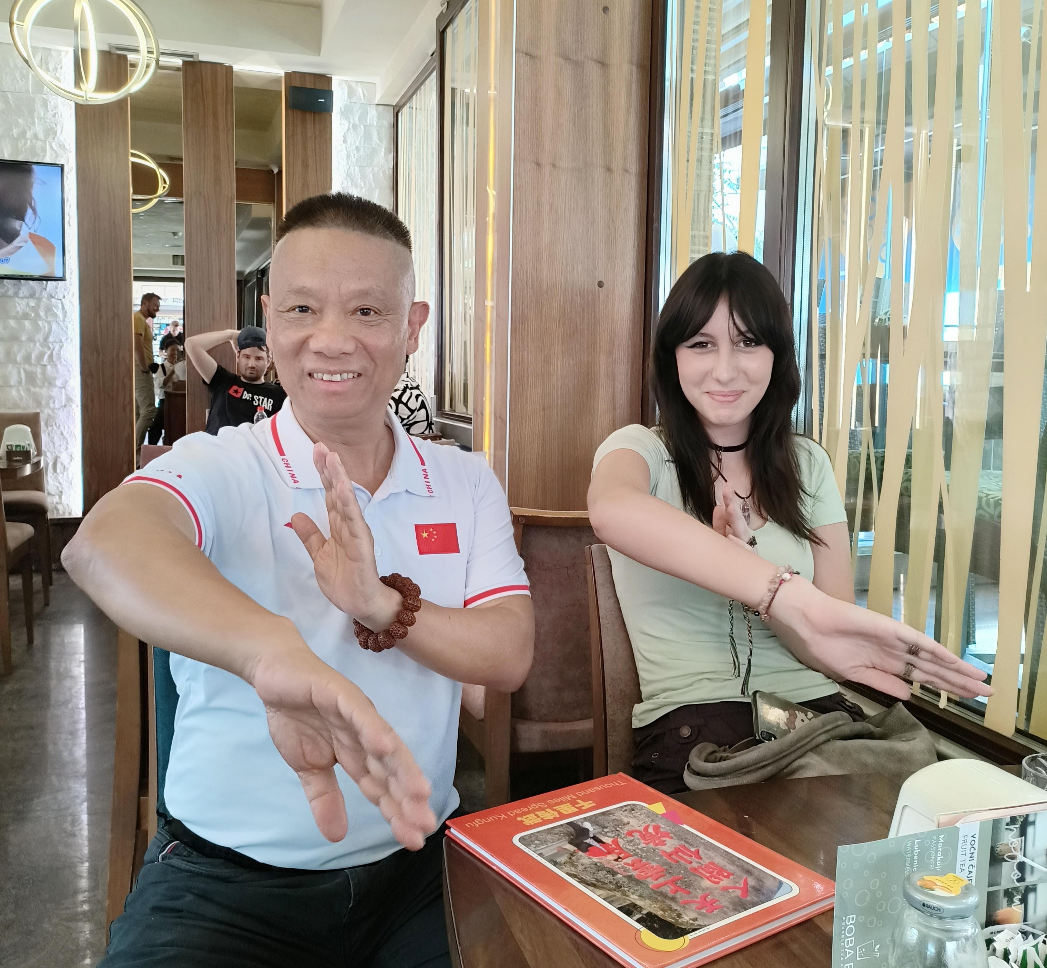 王千里向波黑萨热窝詠春拳俱乐部主席女儿示范詠春拳招式