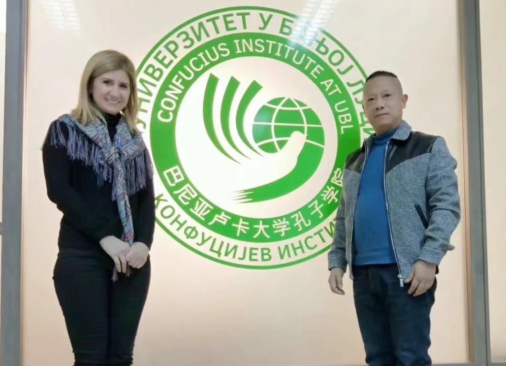 2019年王千里到波黑巴尼亚卢卡大学孔子学院交流并与院长莉安娜合影