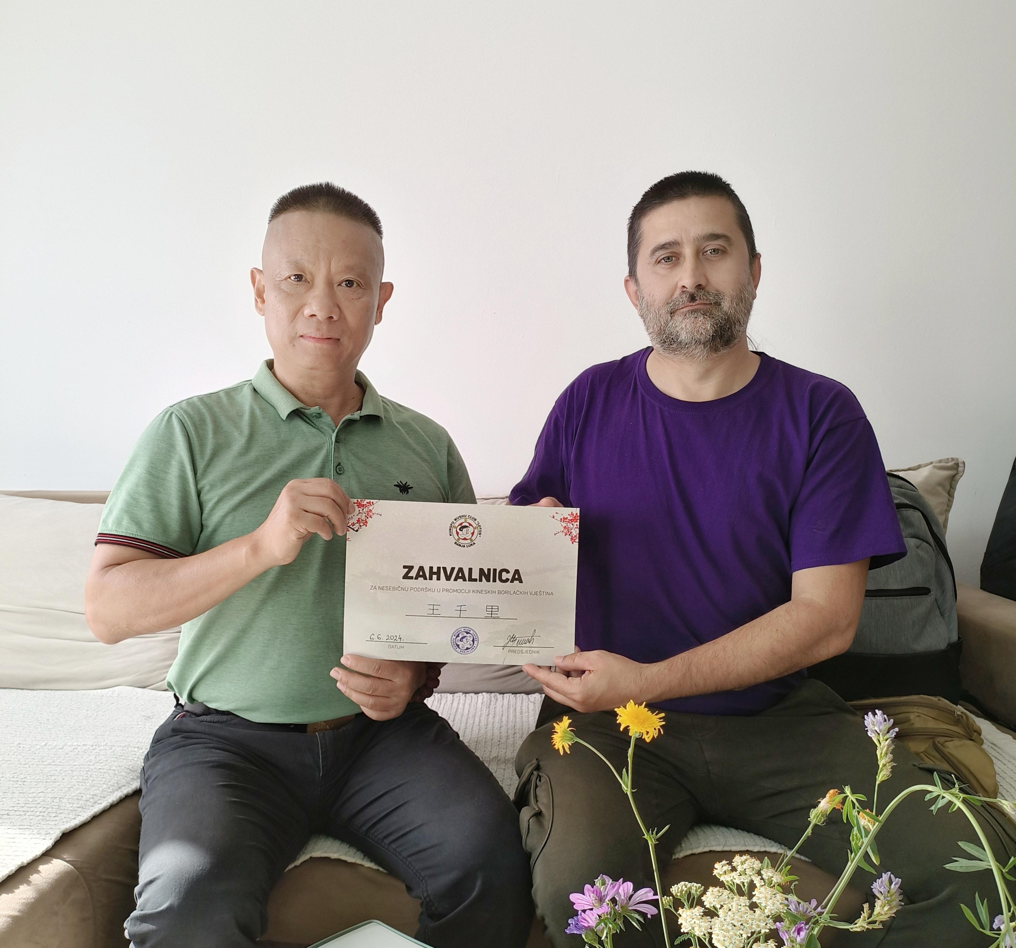 在为期一个多个月的时间内,他四处频频参访交流,精力十足!他与塞尔维亚诺维萨德市忍术俱乐部悟道场负责人斯尔詹·茨尔诺·戈拉茨以及波黑萨拉热窝皇家詠春拳俱乐部主席米尔扎·帕西克等深入交流,探讨开展中国武术培训合作的可行性和存在困难……他还在莫斯塔尔反射运动协会,受邀展示中国国家级非遗项目地术拳技法,并与恩可主席一起探讨地术拳与巴西柔术各自优势和如何互补等,恩可主席还特地向王千里颁发了《感谢状》。