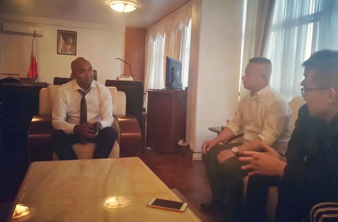 王千里在非洲马达加斯加向该国内政部长菲马海法介绍中国武术