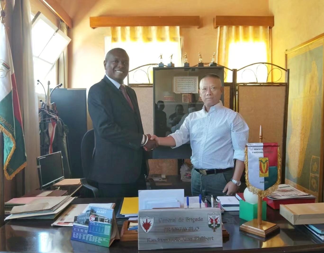 王千里与马达加斯加的菲加贝尔将军交流武术进军营事宜