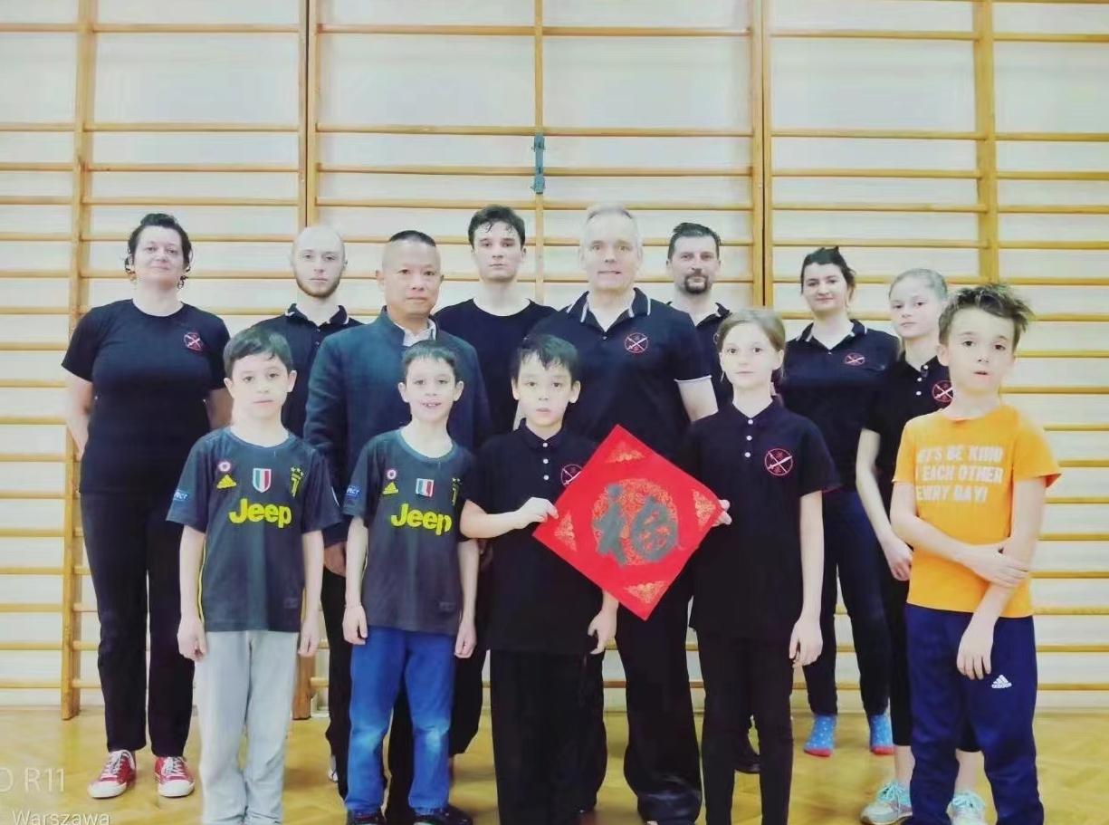 2020年,王千里应波兰精武体育协会主席皮特•奥苏赫(二排右)邀请访问波兰商洽合作