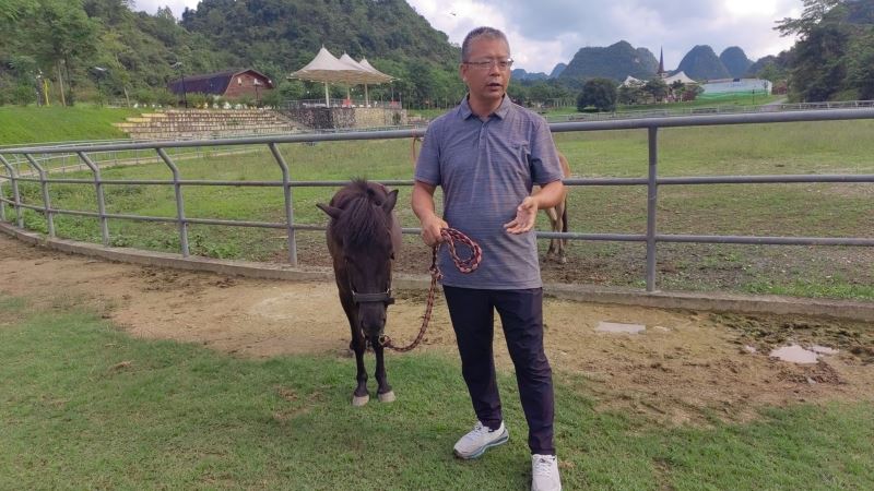 参访团一行参观了矮马饲养牧场,与梁超群董事长进行采访互动,他向来访的海外华文媒体记者们介绍了牧场基本情况,他说矮马王国占地面积达200多亩,总投资达1.38亿元人民币。这是一座青少年爱国教育基地,他们还会受邀参加内蒙每年的赛马大会。