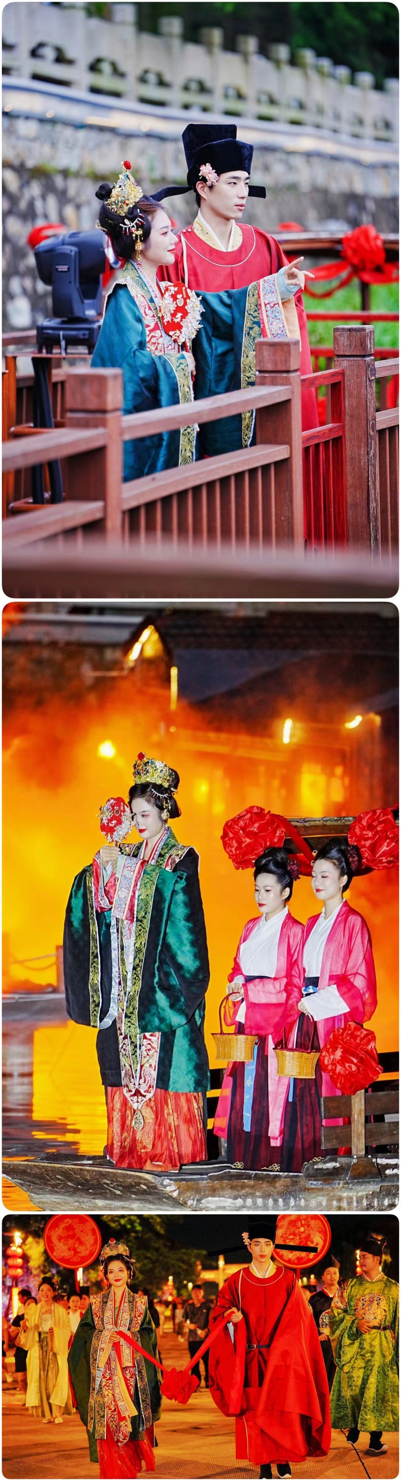以宋代女子婚嫁为景的水上婚礼,将宋代美学的雅致与浪漫情怀完美融合,让游客仿佛穿越千年,见证了那一刻的永恒。而汉服巡游十里红妆更是将浪漫喜庆的氛围推向了高潮,让游客沉浸式感受汉服婚礼的传统魅力。《妈祖传说》灯光秀起,光影交错间,神话重现,慈悲与智慧之光洒满夜空,为七夕添上一抹神圣与祥和。缘份驿站媒说秘会暨《情满七夕》专题演艺等活动轮番上演,为游客们带来了丰富的文化娱乐体验。灯光与宫殿群的灯火交相辉映,浓郁的节日氛围弥漫在每一个角落。