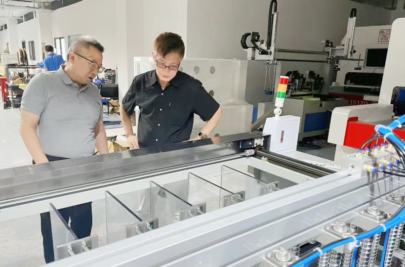 杜猛(右一)在东莞市西马克智能设备有限公司调研