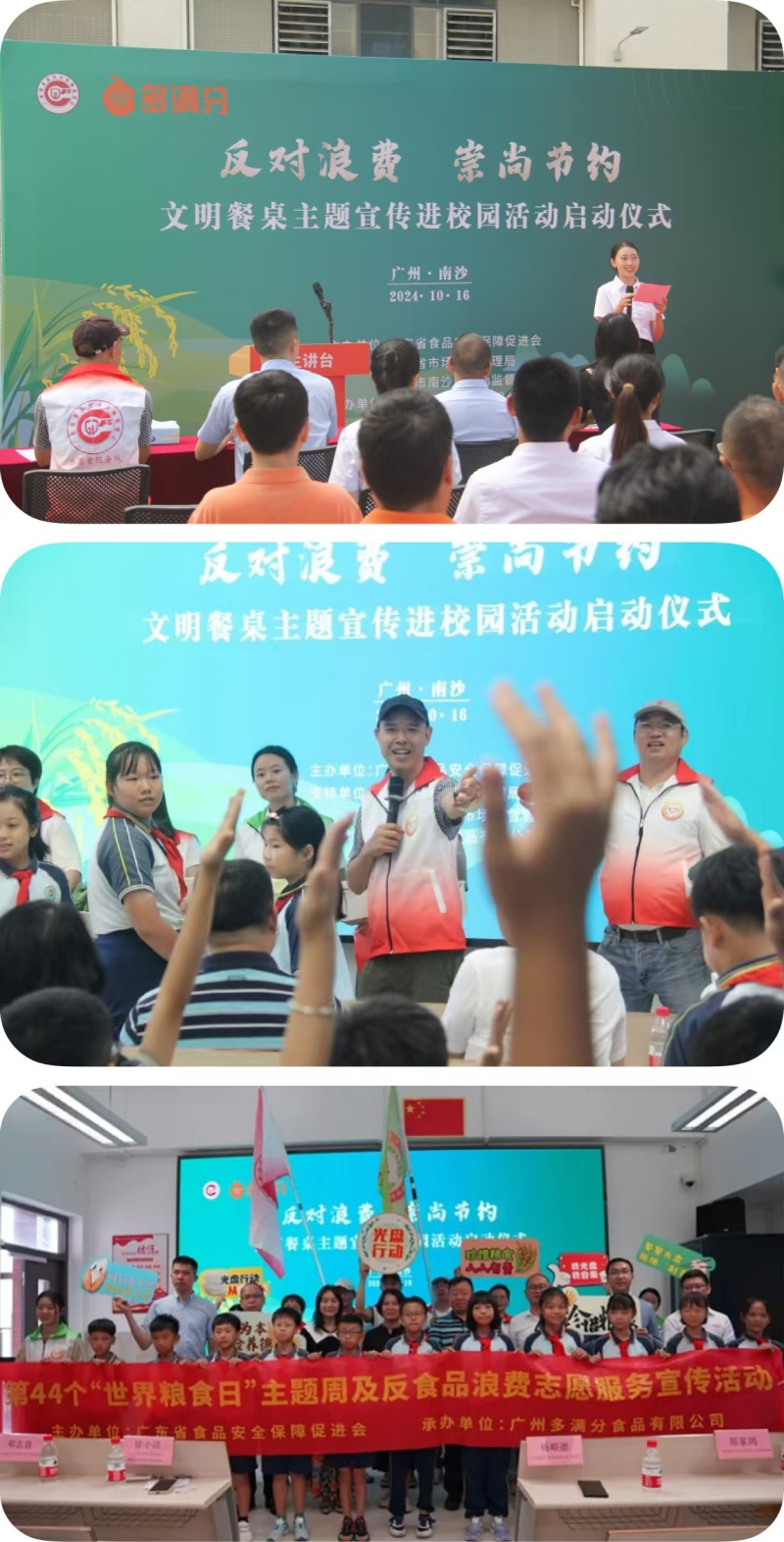 当日下午,“反对浪费崇尚节约”文明餐桌主题宣传进校园活动也在广州南沙东湾小学拉开了帷幕。本次活动得到广东省市场监督管理局、广州市南沙区市场监督管理局的大力支持。