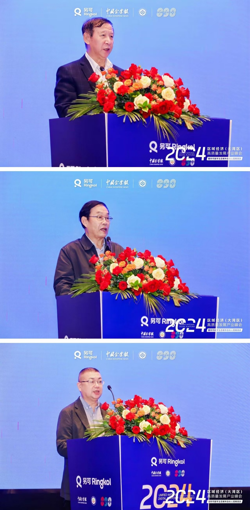 峰会在与会人员翘首以盼中拉开序幕,重磅嘉宾轮番登场,奉上了一系列启迪人心的致辞演讲。活动现场,于洪君会长强调,大湾区作为中国经济最具活力的地区之一,其高质量发展对于提升国家整体经济实力和国际竞争力具有重要意义。面对新的机遇与挑战,社会各界应携手并进,共同推动大湾区的高质量发展。张文周主席同样对大湾区的高质量发展寄予厚望,他呼吁加强区域协同、深化产业合作、注重创新驱动和生态环境保护,希望企业家们能够积极投身于大湾区的建设和发展中。江常问主席指出,当前经济环境下,商协会组织和企业面临诸多挑战,但危机与机遇并存。国家“金融组合拳”新政的出台为区域经济高质量发展提供了新动力,区域经济产业联盟的成立,正是响应国家号召、顺应时代发展的重要举措。