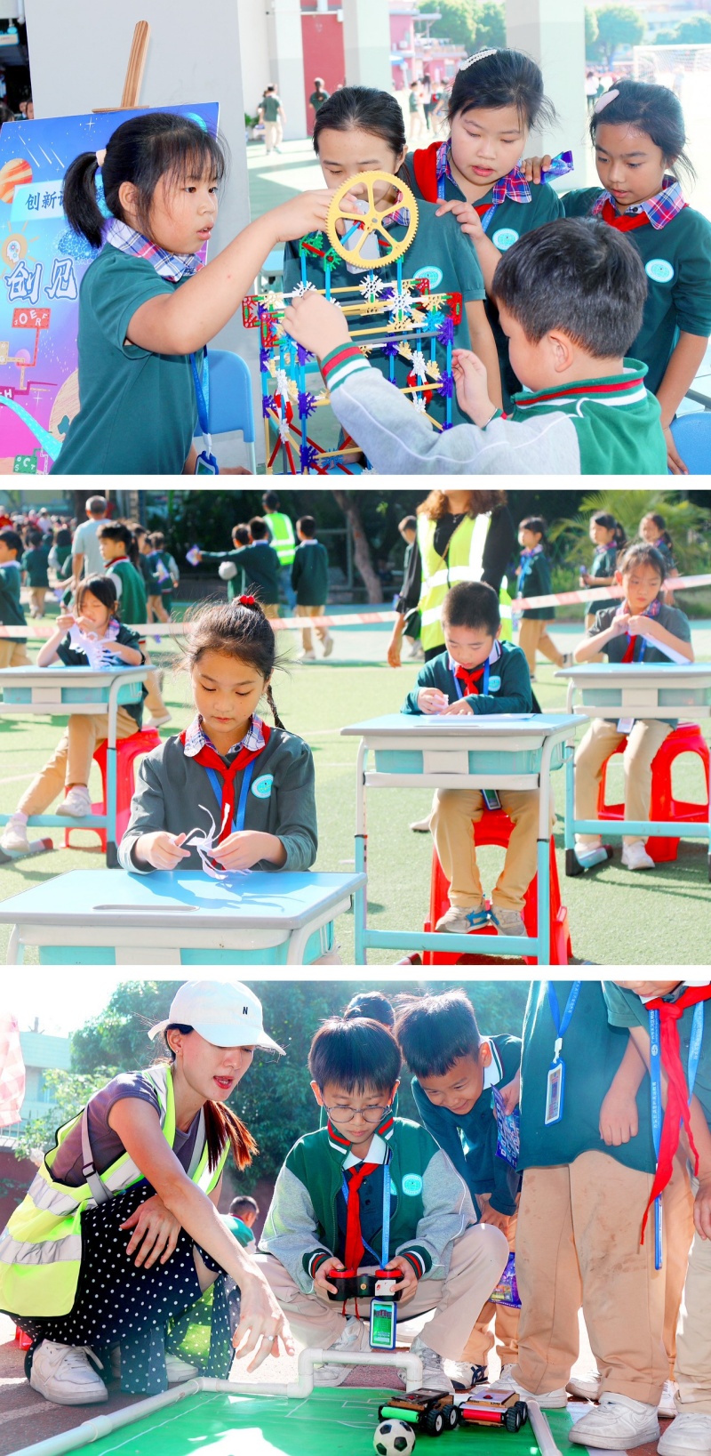 精彩纷呈的科技体验活动,水顶乒乓球、魔法泡泡、磁力水龙卷、不倒翁陀螺仪燧石取火、麦克纳姆轮小车、遥控六足机器人......让孩子们得以亲身感受科技的神秘魅力与无尽乐趣。在这个奇妙的过程中,孩子仿佛化身为勇敢的探索者,在科技的浩瀚海洋中自由驰骋,无畏风浪。同学们在体验中大开眼界,直呼“好玩!