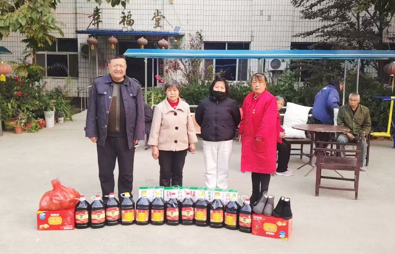 “志愿者在行动、衡水德凡商贸有限公司何圣娣牵手惠民冀州爱心公益团队,开展慰问衡水市冀州区东方老年公寓老人,送爱心活动。衡水德凡商贸有限公司何圣娣牵手惠民冀州爱心公益团队开展开展慰问衡水市冀州区东方老年公寓老人,开展慰问送爱心活动。给送去十斤礼品醋、十斤礼品酱油、箱牛奶各6份,2箱蛋糕、苹果、冬用棉鞋双。让衡水市冀州区东方老年公寓老人们感受到社会的温暖,让老年人过上一个冬节。