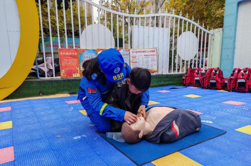 在心肺复苏的演示环节,救援队员们耐心地指导同学们如何正确判断患者的意识、呼吸和心跳情况,并在模拟人身上进行心肺复苏操作。同学们纷纷表示,通过实际操作,他们更加深入地了解了心肺复苏的要领和注意事项。