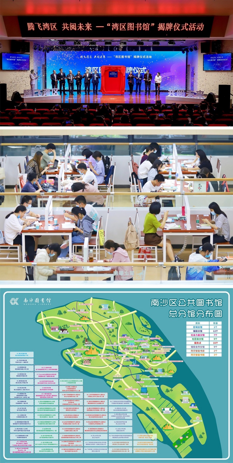 湾区图书馆打通各城市公共图书馆资源。在粤港澳三地图书馆的见证下,2024年初,省文旅厅在南沙区图书馆挂牌“湾区图书馆”,“湾区图书馆联合服务平台”在南图官网同步上线。截至2024年12月31日,联合服务平台累计接入广东省立中山图书馆及14个地市级公共图书馆110余个数据资源库,为湾区读者提供文献资源传递服务15次,举办涉港澳阅读交流活动17场次,接待港澳团体来访参观调研共23批次,服务穗港澳读者逾30万人次。同时,馆内三楼设“湾区图书馆专区”,集中展示900余册湾区各城市特色及多元文化风貌的文献资料,累计吸引约10万人次观看,推动了粤港澳大湾区公共文化资源共建共享。