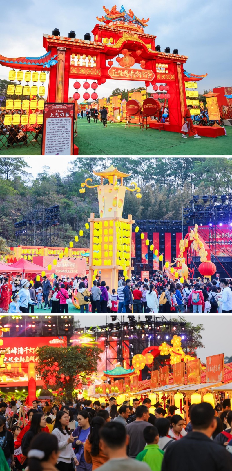 记者在现场看到,帽峰山畔的夜色中,千灯齐明星光璀璨。19组造型独特、寓意深远的大型花灯场景,结合在地文化与历史典故,交织光影与艺术。