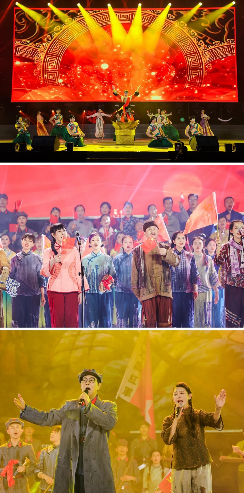 开幕式当晚,甲胄列队开场威势十足,现场热闹非凡。正式开幕后,来自西域的“胡商”率先登台,以妙趣横生的唐诗互动串联全场,带领观众踏上唐朝穿越之旅;古风舞蹈《一夜鱼龙舞》再现辛弃疾笔下的灯火舞动、笑语喧哗;西安杂技、非遗洪拳尽显各地“功夫”本色;异域胡旋舞火热十足,威武龙狮表演热闹喜庆,岭南舞蹈《踩花街》、客家山歌《安居白云享幸福》等展现了岭南地区不同民系文化的独特风情;还有唐风情景剧、《喜结良缘》新婚仪式等节目轮番上演。本地穗丰村村民也积极参与其中,带来了村T走秀《穗丰乡韵正佳情》等精彩演出;更与由正佳集团董事长谢铁牛领衔的正佳合唱队合作,唱响红歌经典《十送红军》,将开幕式进一步推向了高潮。