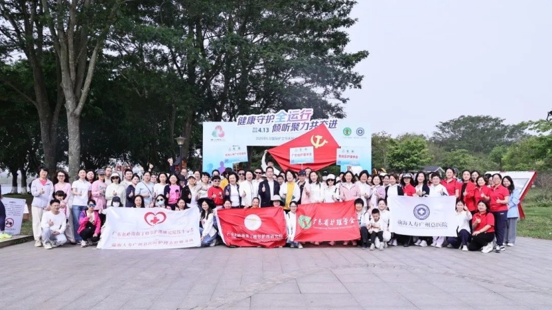 广东省护理学会、增城区卫健局、增城区护理学会及前海人寿广州总医院相关领导、护士长、护士代表近200人在绿意盎然的湖畔步道上以矫健的步伐致敬护理精神,共赴全运之约,展现了医护风采和精神风貌,传递全民健康理念,坚定为健康中国贡献力量的承诺。