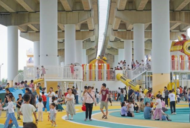 面积约9000平方米,马克村桥下公园深挖本土文化,以东涌水乡文化、醒狮文化为灵感来源,打造集文化展示区、儿童探索区、综合健身区于一体的适合全年龄段的活动休憩空间,成为又一网红打卡点。