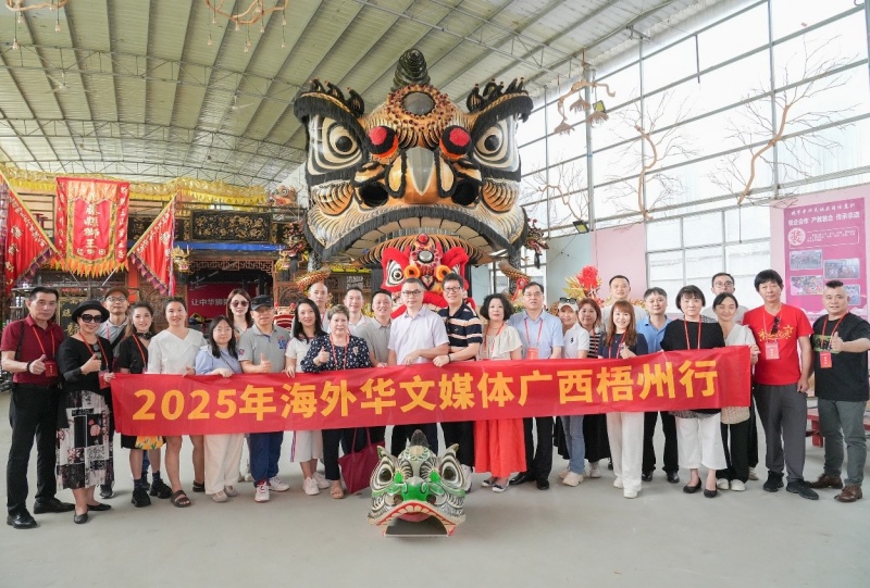 6月27日,参加2025年海外华文媒体广西行的媒体代表们来到梧州市藤县,实地探访国家级非物质文化遗产藤县狮舞传承发展情况。
