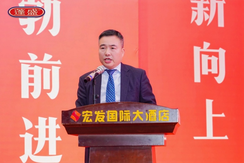 蓬盛食品董事长谢财喜为大会致辞,感谢百忙之中出席本次大会的领导嘉宾,对远道而来的上游企业代表,经销商合作伙伴,供货商代表等嘉宾的到来表示热烈欢迎。谢财喜总结2024年所取得的成绩,积极响应国家新质生产力赋能传统产业的号召,在数字化转型方面加大投入,成效明显。