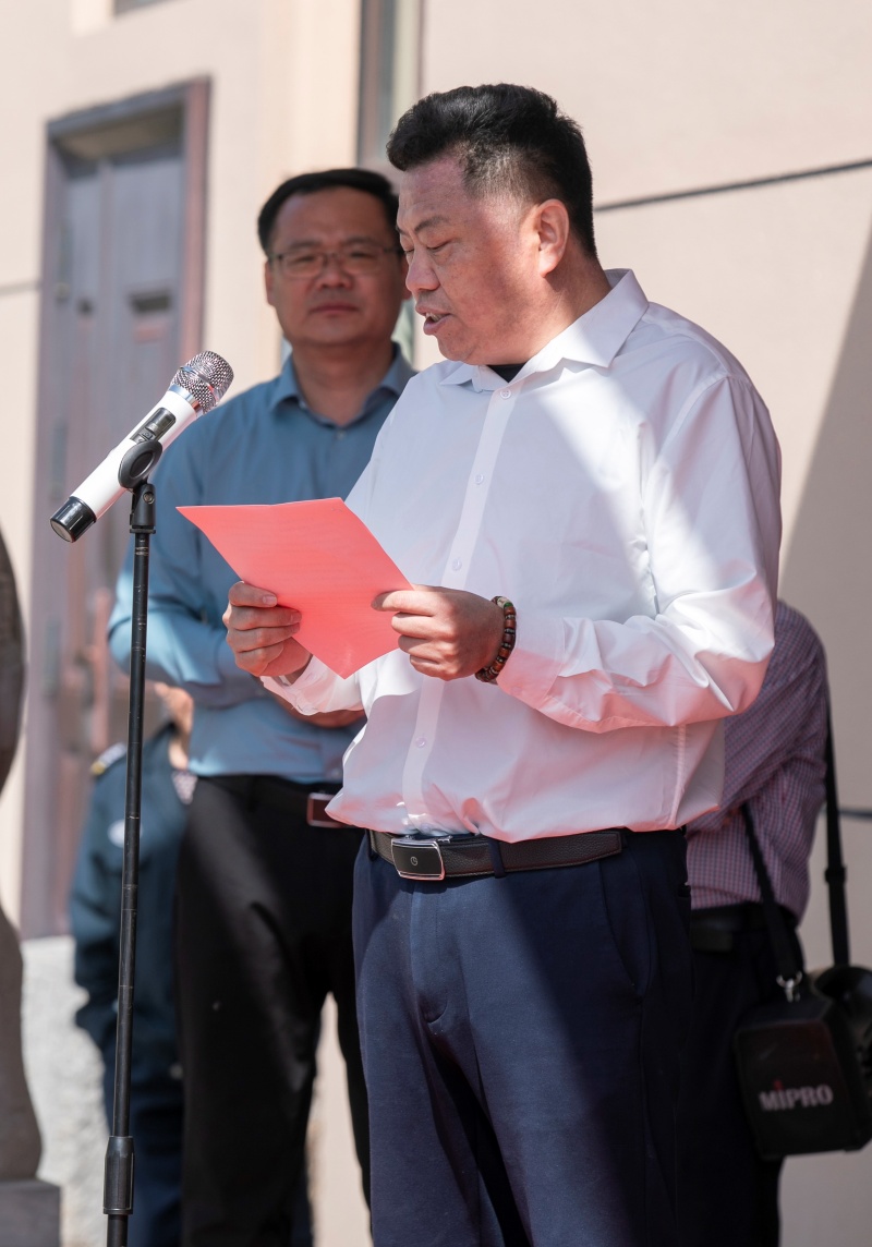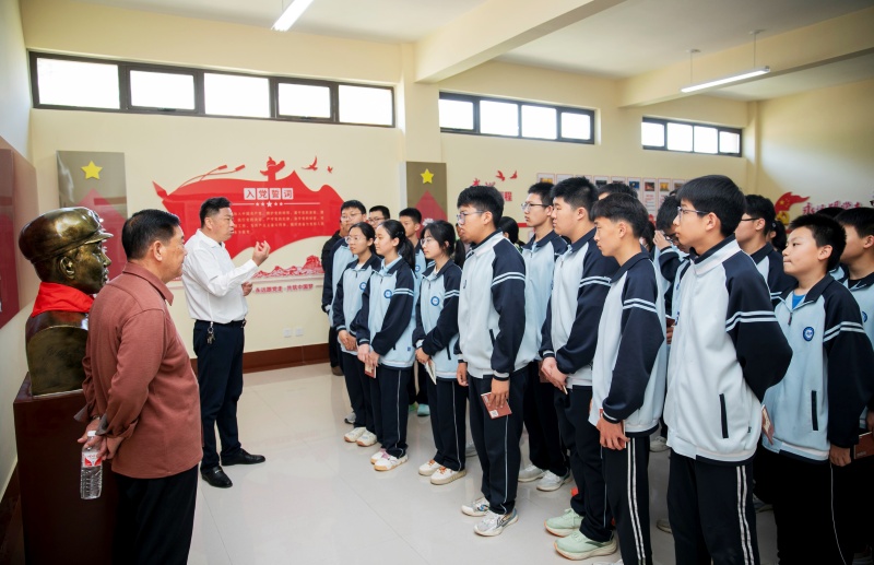许岩校长在致辞中说,瑞琴艺术馆是孙老一生有强烈事业心的真实写照,是他一生美术思想作为的具体体现。馆内各类文物艺术门类齐全、内涵丰富,尤其是雷锋精神展览馆、省内外书画家艺术精品,融政治性、文化性、艺术性于一体,是我们学校研学基地的最佳选择。他着重用“三个感谢”表达了敬意:一是感谢市人大孙主任带领艺术家团队为艺术生们量身定制展陈方案,建立这个研学基地不仅打开了艺术教育的物理空间,更搭建了文化传承的立体桥梁。二是感谢著名老艺术家们捐赠了数十幅祝贺作品,让学校充满着浓浓的艺术气息,这不仅是画技的传授,更是播下了美育种子。三是感谢各界贤达和志愿者团队义务承担了200余件作品装裱。