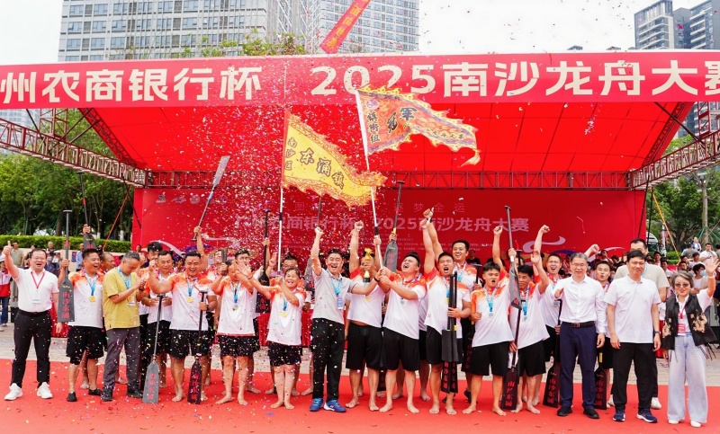 全球自由贸易网广东讯(记者 张兆伟 陆丽萍 通讯员 罗瑞娴 刘冰汧 张丁璞 罗慧敏)5月25日,备受瞩目的广州农商银行杯2025南沙龙舟大赛在南沙区蕉门河(南沙万达广场至南沙图书馆河段)盛大举行。作为2025年广州体育嘉年华系列赛事之一,本届大赛以“图南奋楫・逐梦全运”为主题,不仅汇聚了大湾区50余支精英队伍、1000多名运动员同场竞技,更在赛事规模、文旅融合、商圈联动等方面实现全面升级,成为展示南沙城市魅力与体育精神的重要舞台。赛事现场气氛热烈非凡,线上线下共吸引了超200万人次市民和游客观赛。早晨七点开始,蕉门河两岸早早地就围满了人群,一开赛观众纷纷拿出手机、相机,记录下比赛的精彩瞬间。当龙舟飞驰而过时,现场欢呼声、呐喊声此起彼伏,为支持的队伍加油助威声音响彻云霄。最终,东涌镇男子龙舟队以不到一秒的冲线时间优势,拿下今年南沙镇街组的第一名,全队队员光着脚一起站上领奖台,捧起金杯和彩旗,高高举起手中的桨。