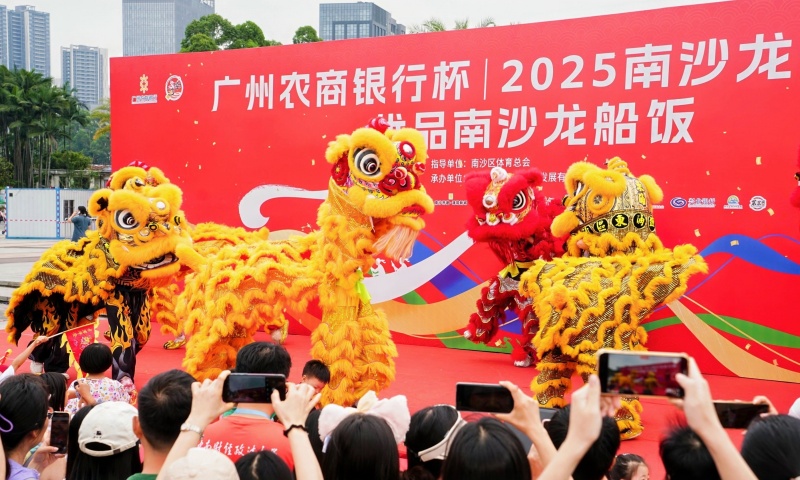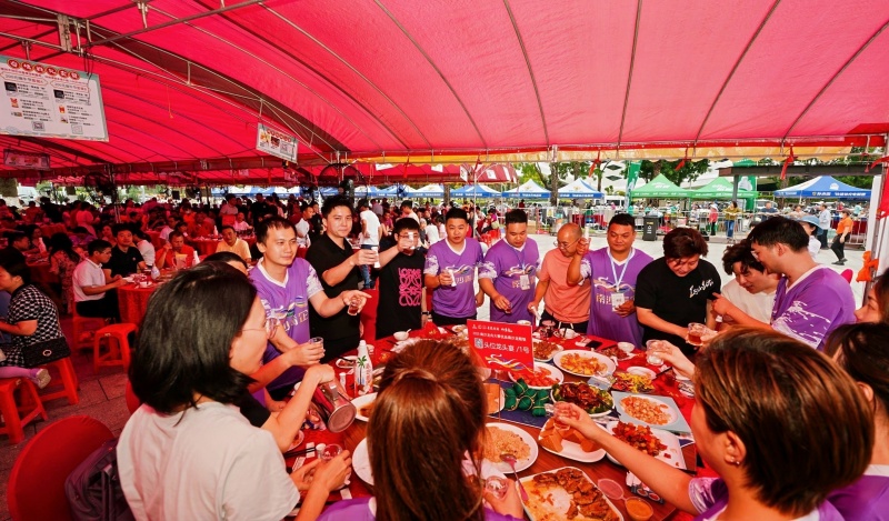 在品尝美味佳肴的同时,现场还有岭南特色节目助兴。当威风凛凛的南沙醒狮踏着铿锵鼓点腾跃翻飞,原生态咸水歌谣裹挟着海风咸香在耳畔回荡,新创南沙主题歌曲用激昂旋律奏响时代强音——这不仅是舌尖上的盛宴,更是南沙文化传承的美好展现。当美食遇见民俗风情,当龙舟健儿以桨为笔书写同袍情谊,这场跨界交融的文旅嘉年华,正以美食为媒、文化为魂,在觥筹交错间架起粤港澳大湾区文化共鸣的金色桥梁。