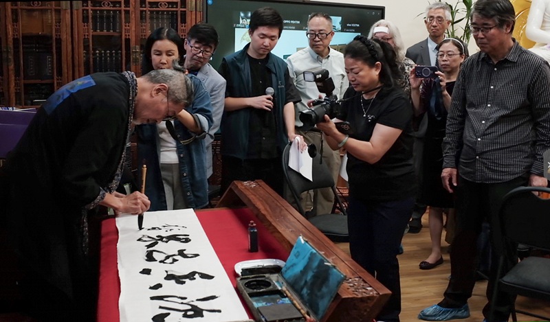 意象书画家石甫现场书写《沉香世界》,并将墨宝捐赠给WACMM。