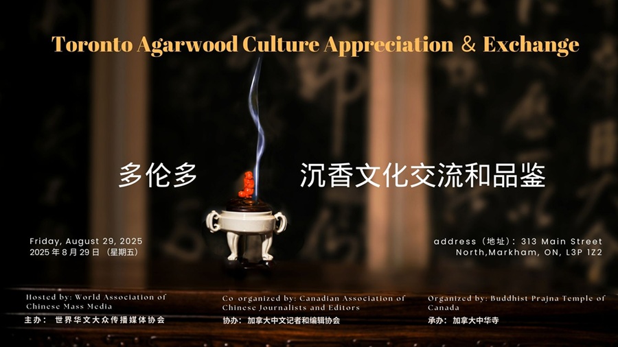 “多伦多沉香文化交流和品鉴”活动 ,是关于香与社区精神的一日盛会。这不仅是一场文化展示,更是一场关于多元与和谐的心灵之旅。活动由世界华文大众传播媒体协会(WACMM)主办,加拿大中文记者和编辑协会协办,加拿大中华寺承办。