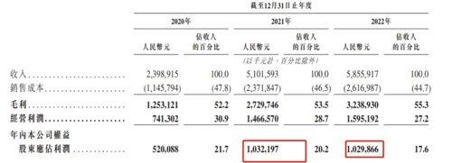根据招股书,2020年、2021年及2022年,珍酒李渡营业收入分别为23.99亿、51亿及58.56亿元,同比增速分别为112.7%和14.8%,2022年收入增速放缓明显。而由于成本和费用刚性,2022年净利润则出现下滑,其近三年净利润分别为5.2亿元、10.32亿元、和10.3亿元。三年净利润率分别为21.7%、20.2%及17.6%,持续下滑。