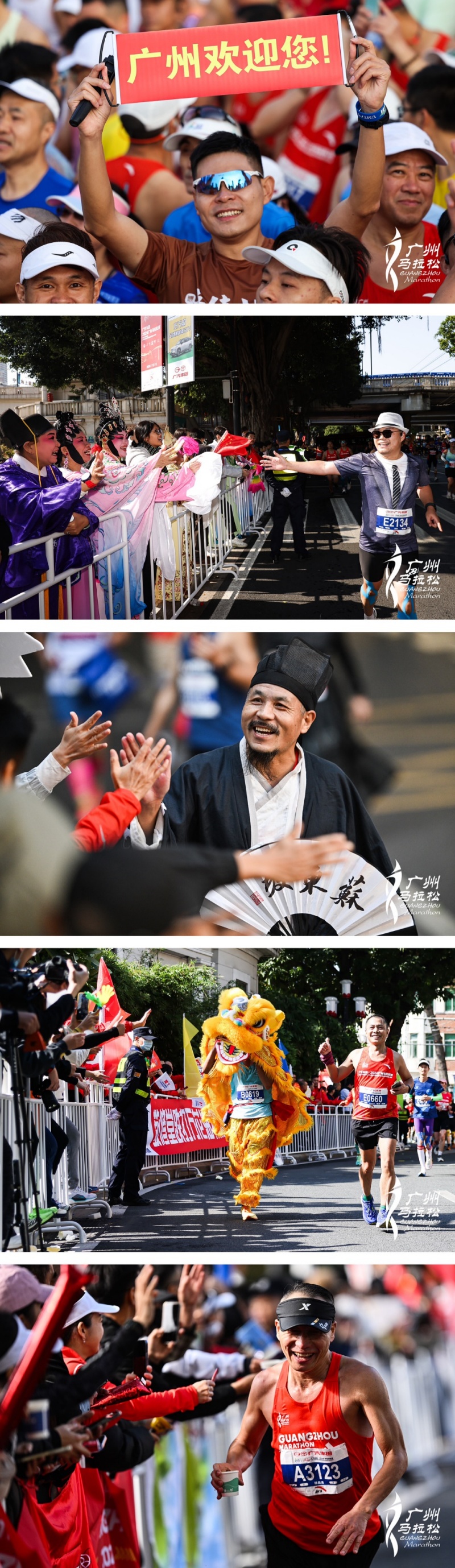 中央广播电视总台领衔,广东广播电视台、广州市广播电视台等多家媒体平台全球直播齐助力,公交站、地铁、户外大屏以及广府文化主题双层旅游巴士齐上阵,广马元素遍布城市各个角落,营造出浓厚的赛事氛围。