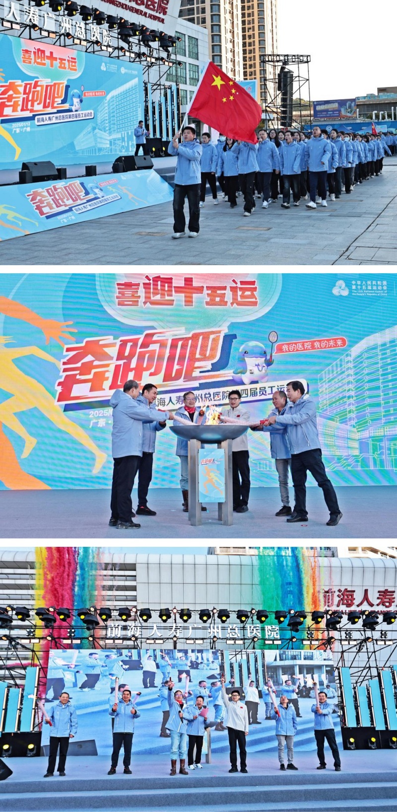 记者看到,活动现场处处飘扬着“激情十五运,活力大湾区”等标语旗帜,十五运会会徽、吉祥物“喜洋洋”和“乐融融”等元素融入现场的布置中。而医院职工们则精神抖擞、斗志昂扬,激情澎湃地迎接着运动会的开展。