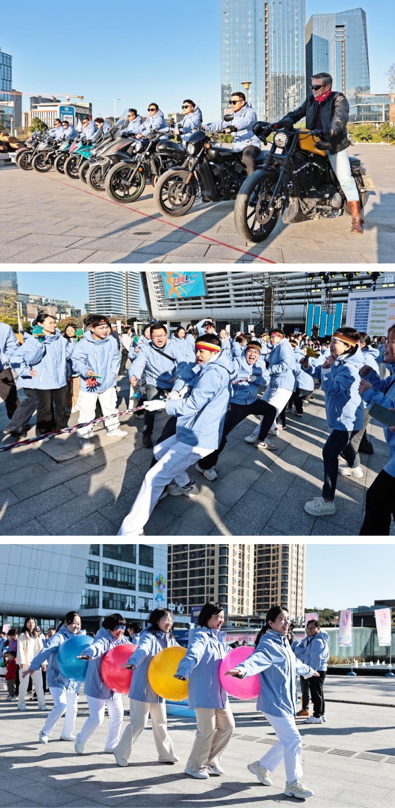 本次运动会项目采用团体赛制,赛程紧凑高效。指压板接力、平板支撑、欢乐背夹球、接力五子棋等小型项目,既考验了个人体能,又促进了团队协作;拔河比赛、旱地冰壶、排球来了、跳大绳、扯腰旗等大型项目,则要求更多人分工协作、默契配合。此外,现场还设有亲子项目,进一步营造全民健身的热潮。